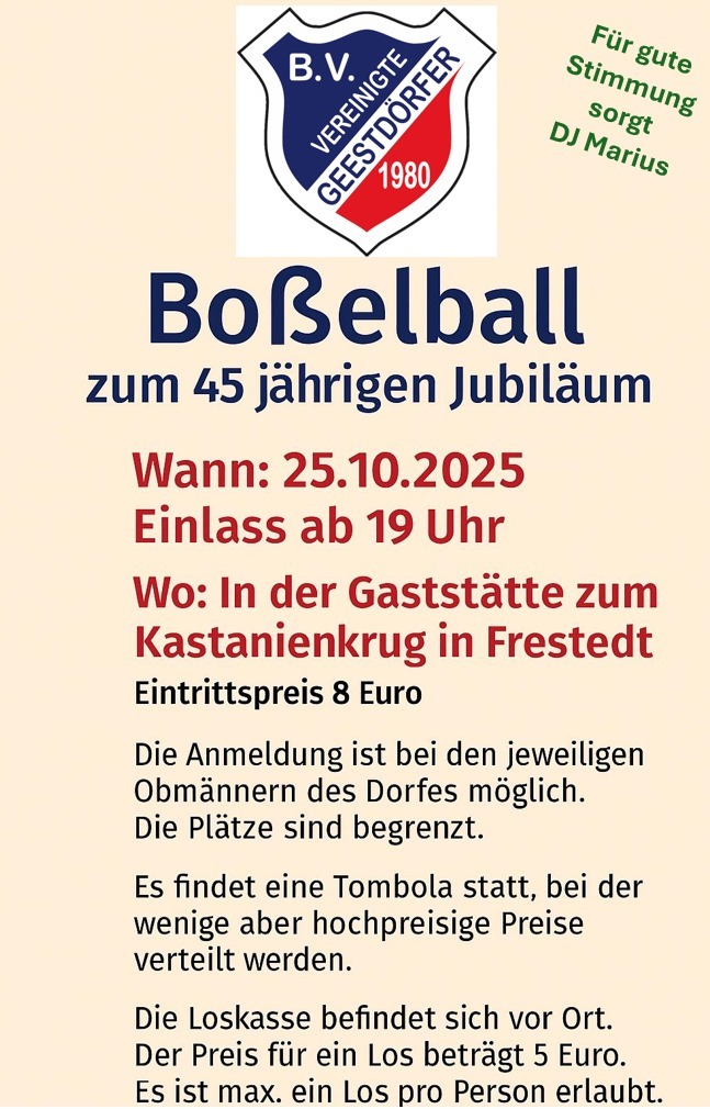 Boßelverein: => Jubiläumsball “45 Jahre Vereingte Geestdörfer”