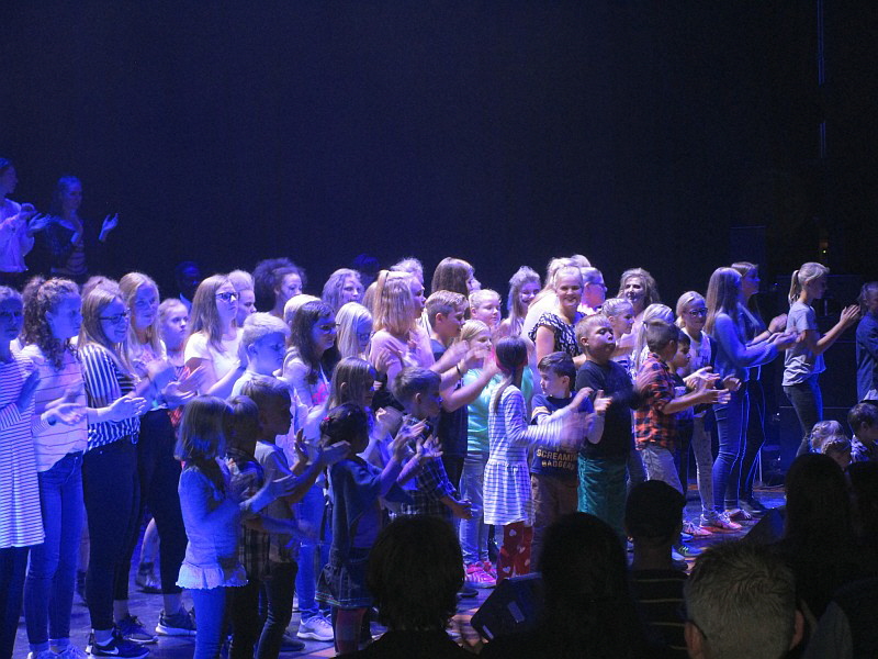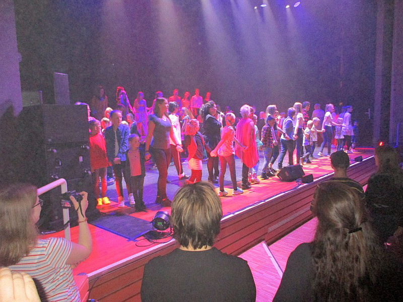 Der Auftritt von Anne und die 40 Stimmen kam erst ganz am Ende der Show. Beim Schlusslied “heel the world” kam die Süderhastedter Gruppe von beiden Seiten auf die Bühne und stimmte in den Gesang des Ensembles mit ein.
