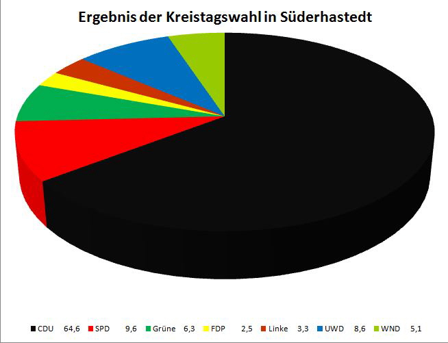 Für die Gemeinderatswahl in Süderhastedt treten wie in den Vorjahren die CDU und die Kommunale Wählervereinigung auf. Auf dem weißen Stimmzettel für diese Wahl kann jeder Wahlberechtigte maximal 6 Kreuze setzen, welchen Kandidaten aus welcher Fraktion er am liebsten in der aus insgesamt 11 Mitgliedern bestehenden Gemeindevertretung sehen möchte.