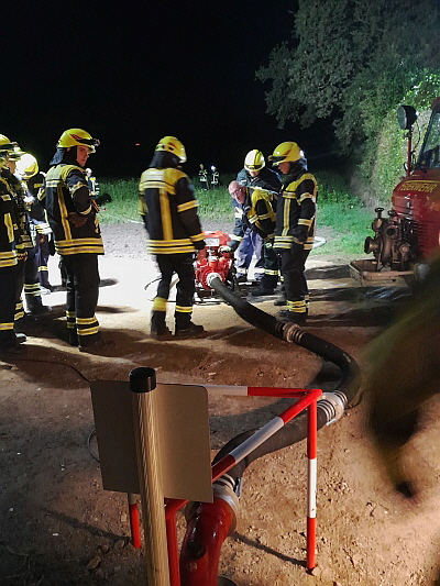 Eine herbstliche Übung auf dem Neuhof diente dazu, sich mit neuer Lichttechnik und vor allem mit den Gegebenheiten eines von den drei landwirtschaftlichen Betrieben gemeinschaftlich installierten Löschwasserbrunnens vertraut zu machen.