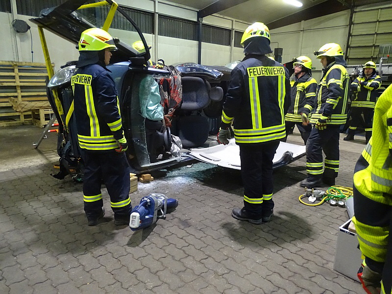 Um im Einsatzfall sicher mit den Gerätschaften umzugehen und mögliche Gefahrenquellen an Unfallfahrzeugen zu erkennen und Gefahren zu vermeiden, sind diese technischen Dienstabende ein wichtiger Teil der regelmässigen Ausbildung.