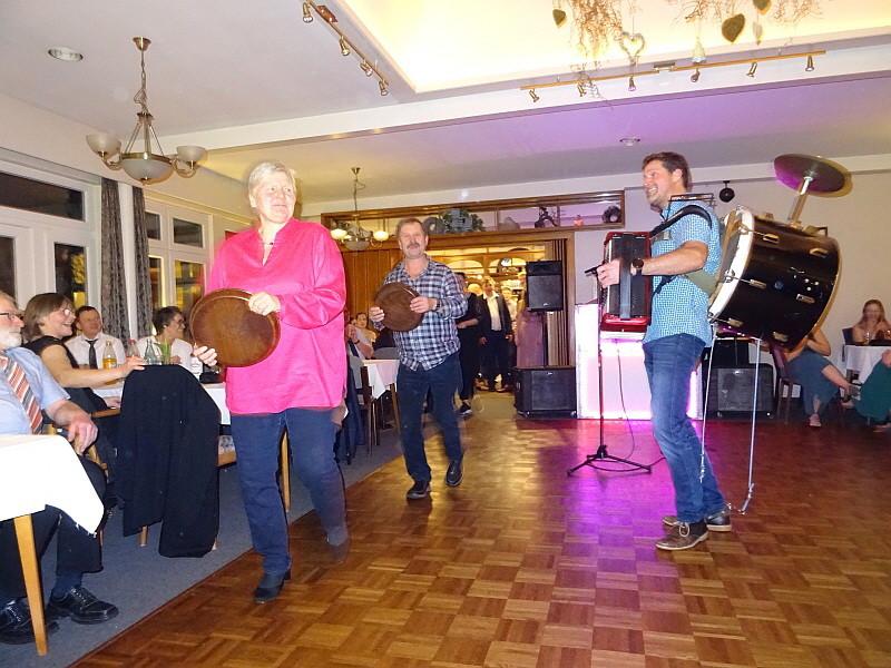 Nach den ersten Tanzrunden gab es eine fulminante Showeinlage von Unterhaltungskünstler Ottmar (alias Philipp Scheel), der unter Mithilfe einiger Süderhastedter Akteure richtig Stimmung auf den Saal brachte, so dass kein Auge trocken blieb.